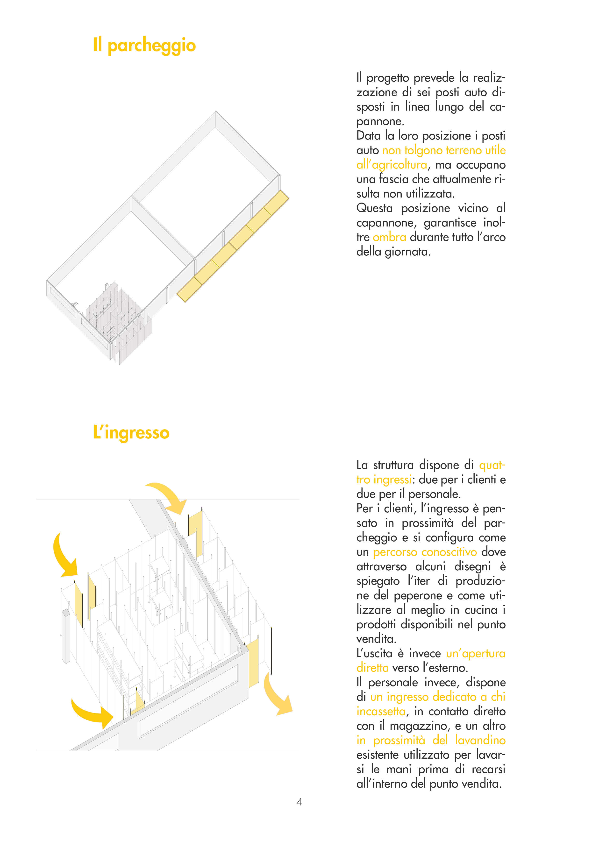 Per realizzare un punto vendita per l’azienda “Cavagliato Peperoni”, la soluzione che meglio si adegua alle esigenze della committenza, consiste in un intervento all’interno di un capannone esistente.