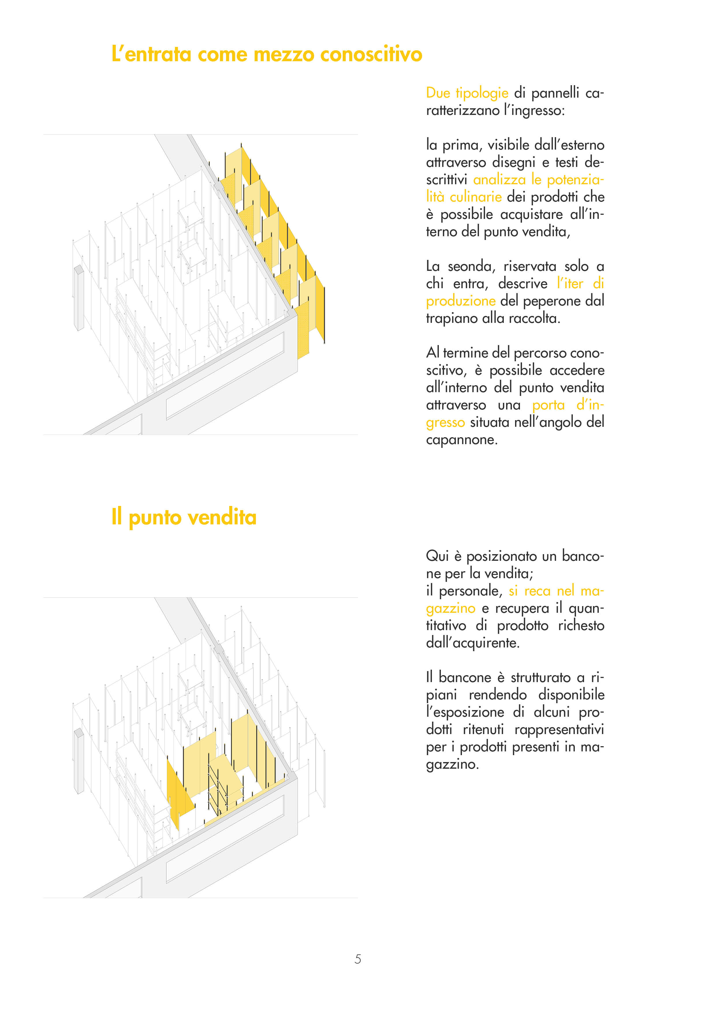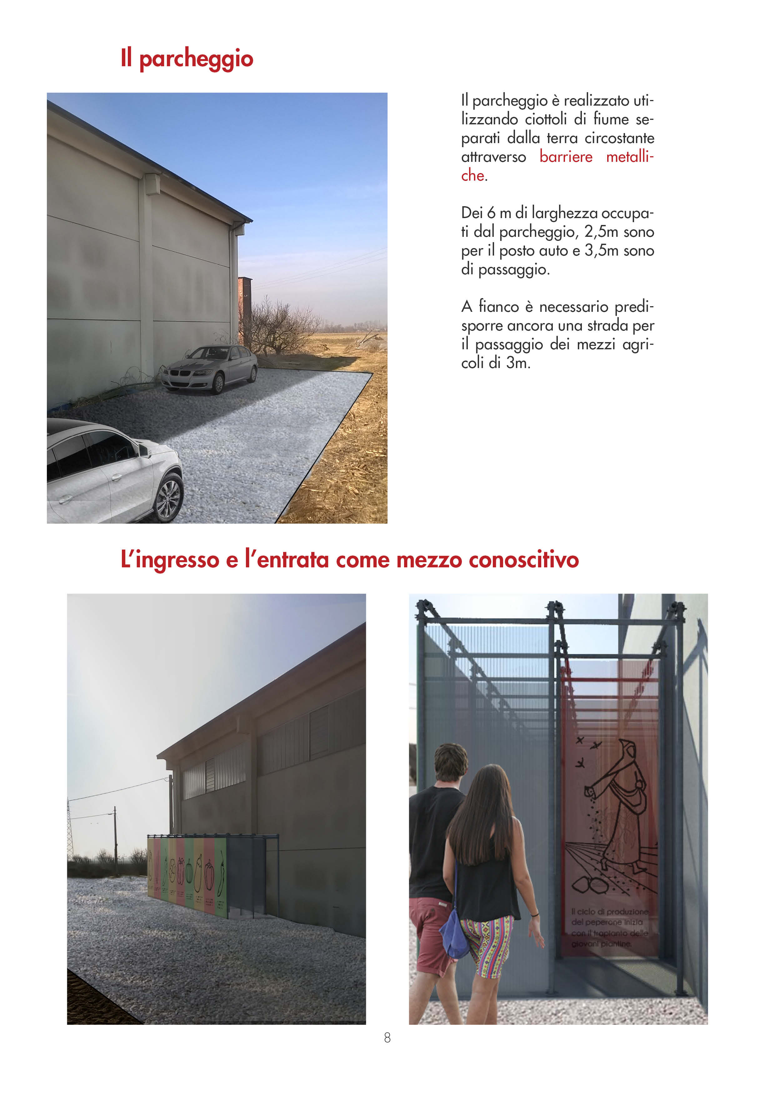 legislative constraints to follow. A crucial point of the project is the development of the structure towards the outside that creates an entrance, visible from afar: the access is configured as a cognitive path where the production process